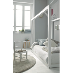 Cama casita realizada en madera de pino macizo lacado color blanco.