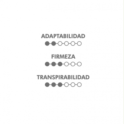 Colchón de núcleo sólido y una capa de visco de 10 mm. Tejido Stretch Aloe Vera. Tapa acolchada con espuma y fibra virgen de poliester posibilitando una mayor aireación del colchón, mejorando su tacto y tumbada. Platabanda en tejido 3D gris y ribetes a juego.