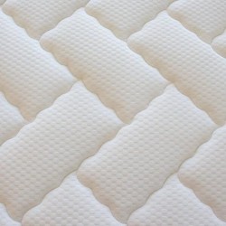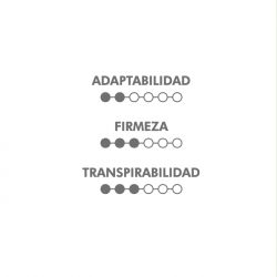 Colchón de núcleo sólido y una capa de visco de 10 mm. Tejido Stretch Aloe Vera. Tapa acolchada con espuma y fibra virgen de poliester posibilitando una mayor aireación del colchón, mejorando su tacto y tumbada. Platabanda en tejido 3D gris y ribetes a juego.