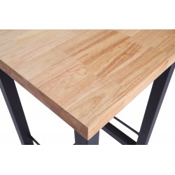 Mesa alta con tapa de madera de 54 mm grosor de madera alistonada de roble y patas metálicas de color negro.