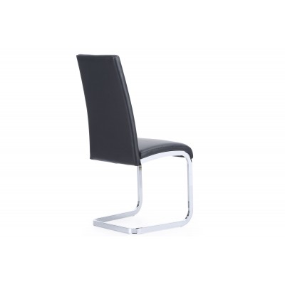 Silla de comedor tapizada en símil piel negro y estructura tipo patín cromado.